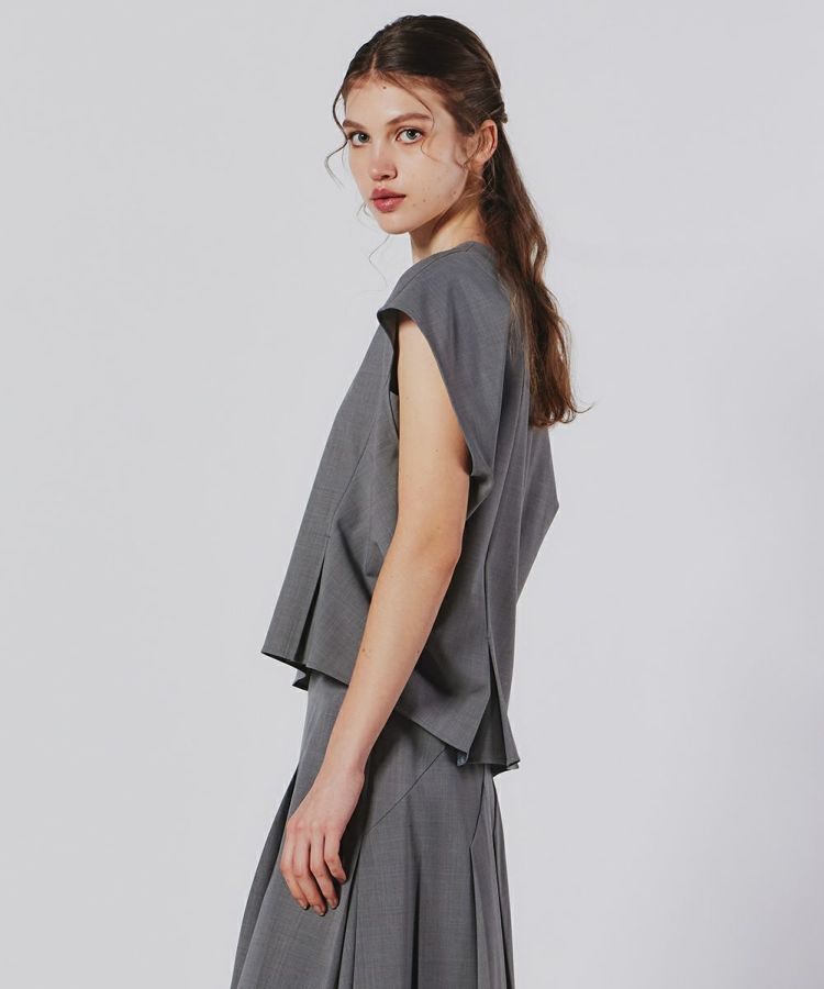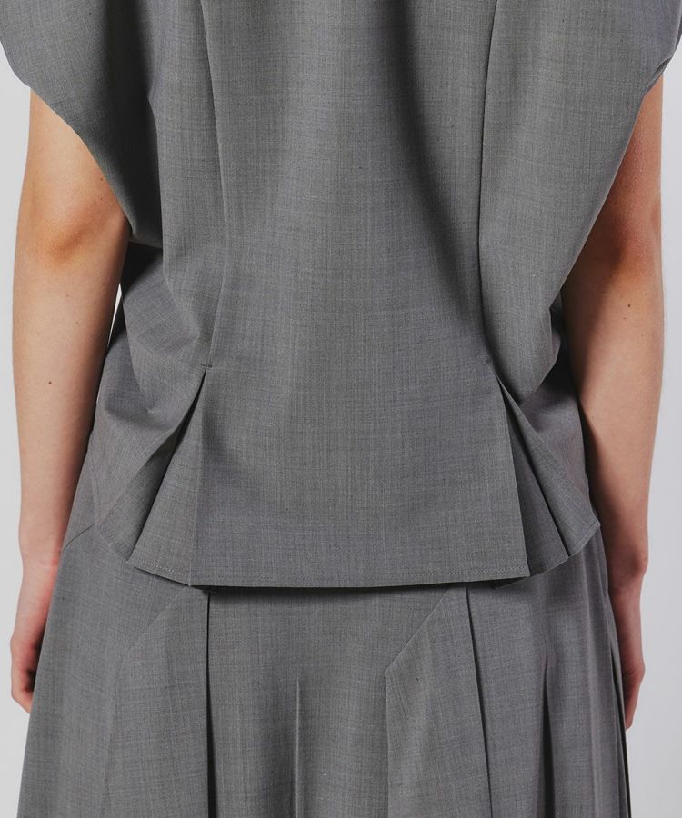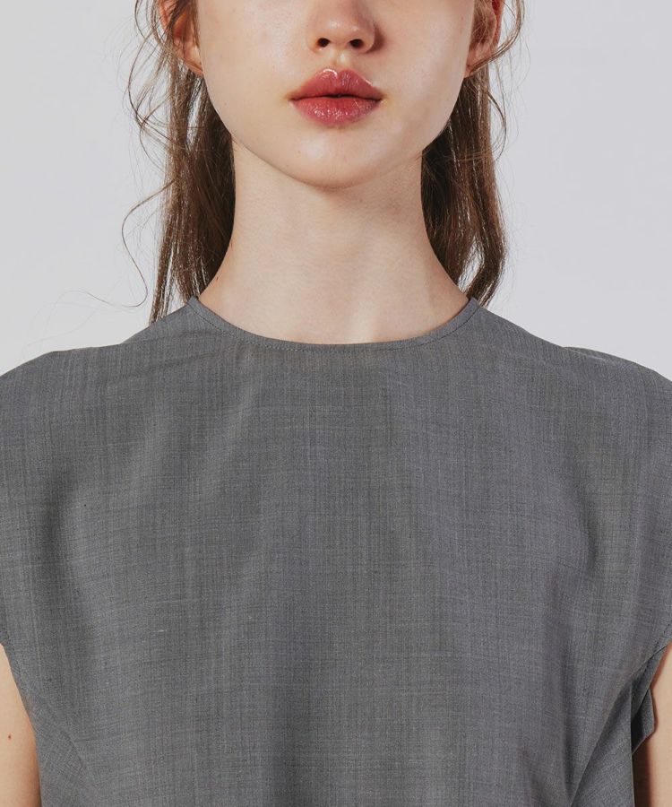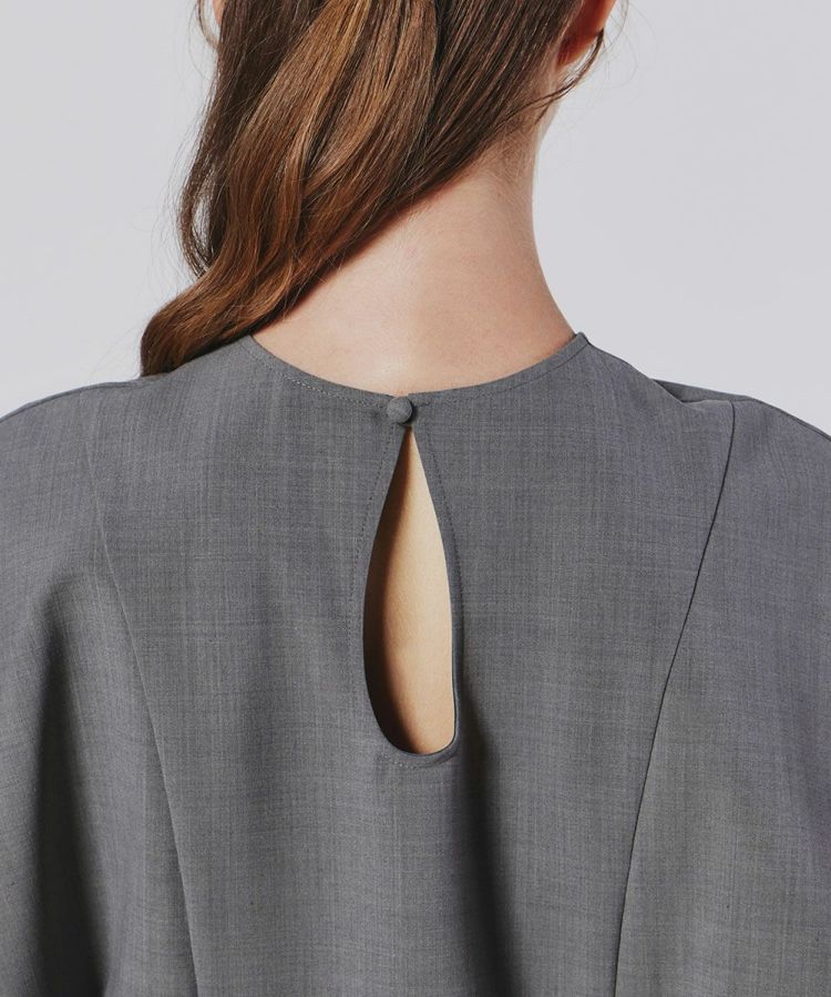 混紡糸マサキヤーンを使用した、ストレッチ性のある生地に仕上げたプルオーバー。なめらかな表面感と上品な光沢感が特徴で、ウール混ながらもシルクを思わせるハリ感があり、パリッとした着こなしが叶います。バックのさりげない開きがセンシュアルなムードをプラス。二の腕を自然にカバーしてくれるフレンチスリーブもポイントで、女性らしい丸みがありつつも腕のラインをきれいに演出してくれる一枚です。