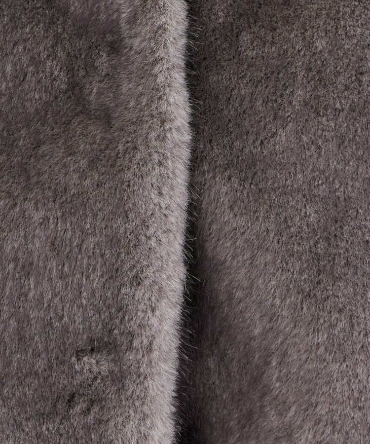 上品な光沢をまとった、高級感漂うファーベスト。ポリエステルファーを丁寧にトリミングし、毛先には差し毛カラーを入れたことで、本物のミンクのような立体感と風合いを再現しました。リュクス感がありながらも軽やかで快適な着心地をキープ。シンプルなカットソーやニットの上から羽織るだけで、エレガントな装いが完成します。