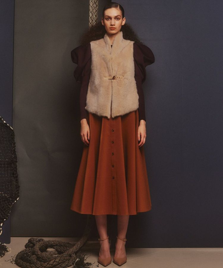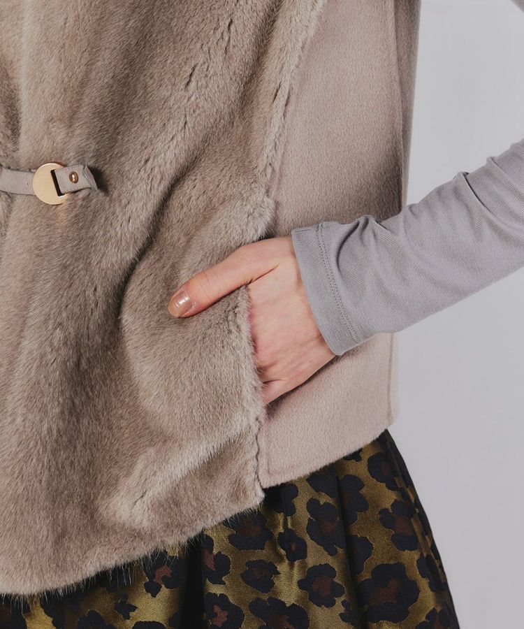 ミンクの皮面をスウェード加工することで、リバーシブルウールと一層仕立てにしたジレ。ボリュームが出がちなファーアイテムを、すっきりとしたシルエットに仕上げました。シンプルな初冬のアウターとしてはもちろん、コートのインナーとしてレイヤードするのもおすすめ。コーディネートに深みを与えてくれるアイテムです。