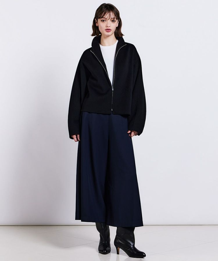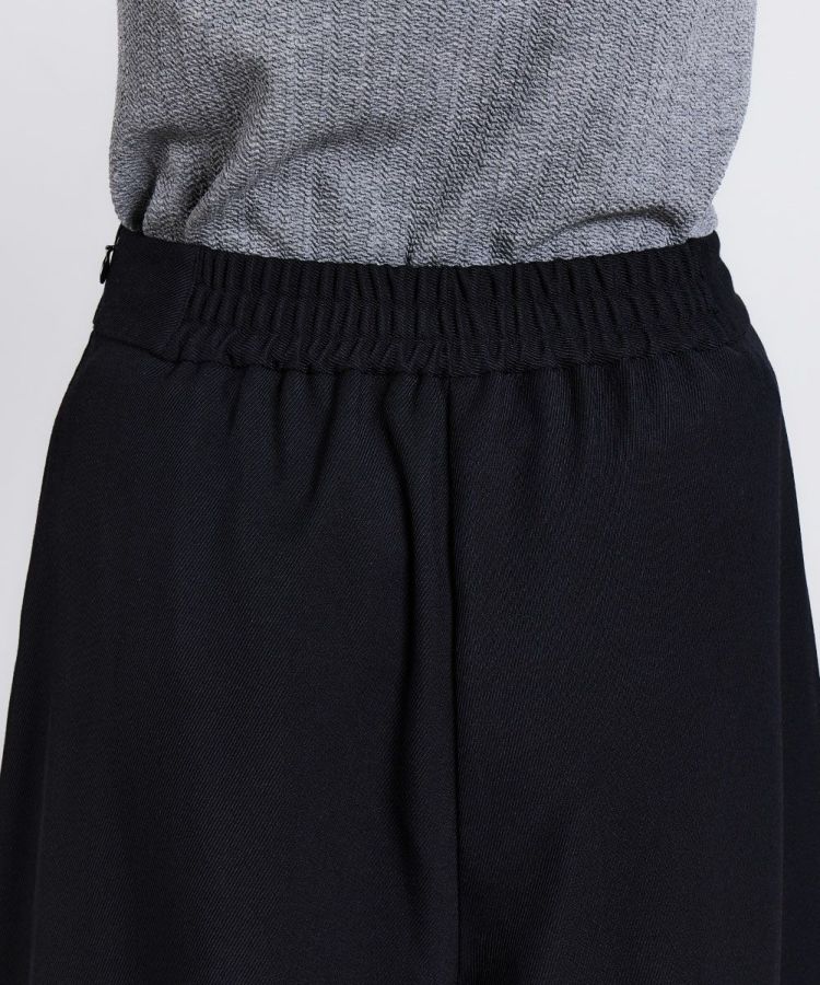 ポリエステルとウールの混紡糸を使用したカルゼ組織のキュロットパンツ。サイロ糸を組み合わせることで柔らかさを表現しました。また、膨らみ感とたっぷりのボリュームも特長で、スカート風に楽しめるのが魅力的。素材の上品さが際立つアイテムで、糸にスケールオフ加工を施しているため、毛羽立ちが少ないのもうれしいポイントです。