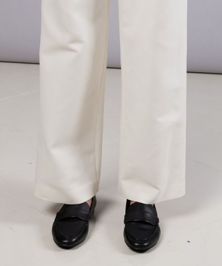 シンプルなストレートシルエットで、着回し力に優れたホワイトパンツ。高密度でコンパクトに織り上げたコットン素材を使用し、柔らかな肌ざわりと快適な履き心地を実現しました。タック入りのデザインが腰まわりをすっきりと見せ、スタイルアップを実現。クリーンな印象のホワイトパンツは、コーディネートに爽やかなエッセンスをプラスしてくれます。