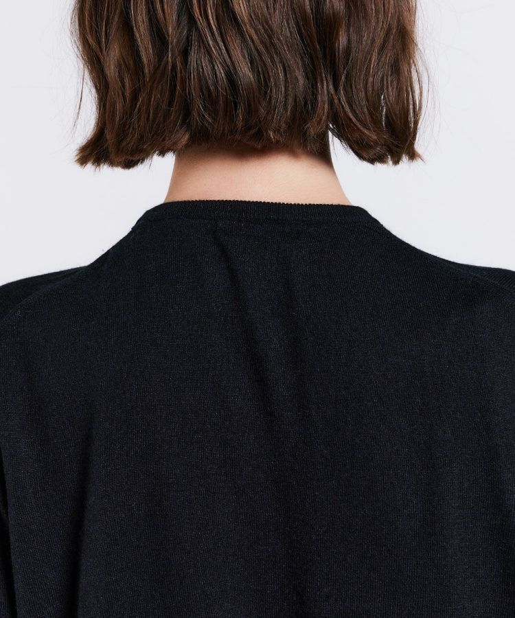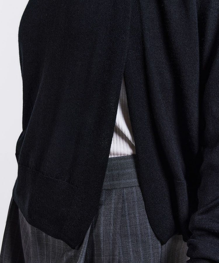 オールシーズン着られるシルクカシミヤの梳毛を使用した、ラグジュアリーな素材感が特長のカーディガン。カーディガンとしてはもちろん、袖を抜いてボレロのように羽織ることもできます。ベーシックな黒は使い勝手良く、挿し色のパープルも、コーディネートの上品なアクセントに。着まわしがききオールシーズン重宝するので、ぜひこの冬からワードロープにプラスしたいアイテムです。