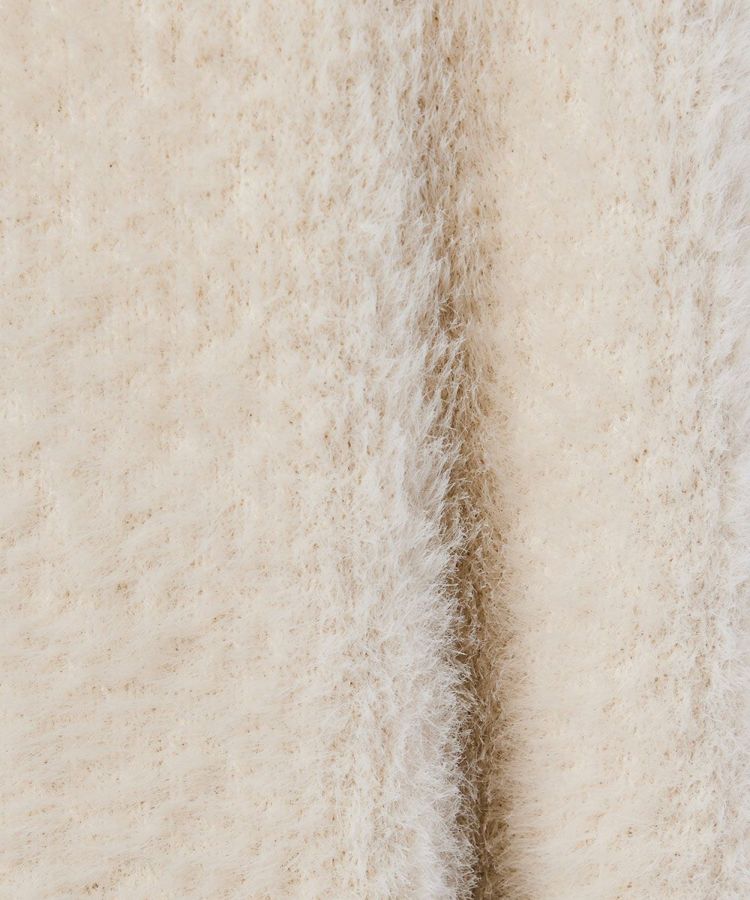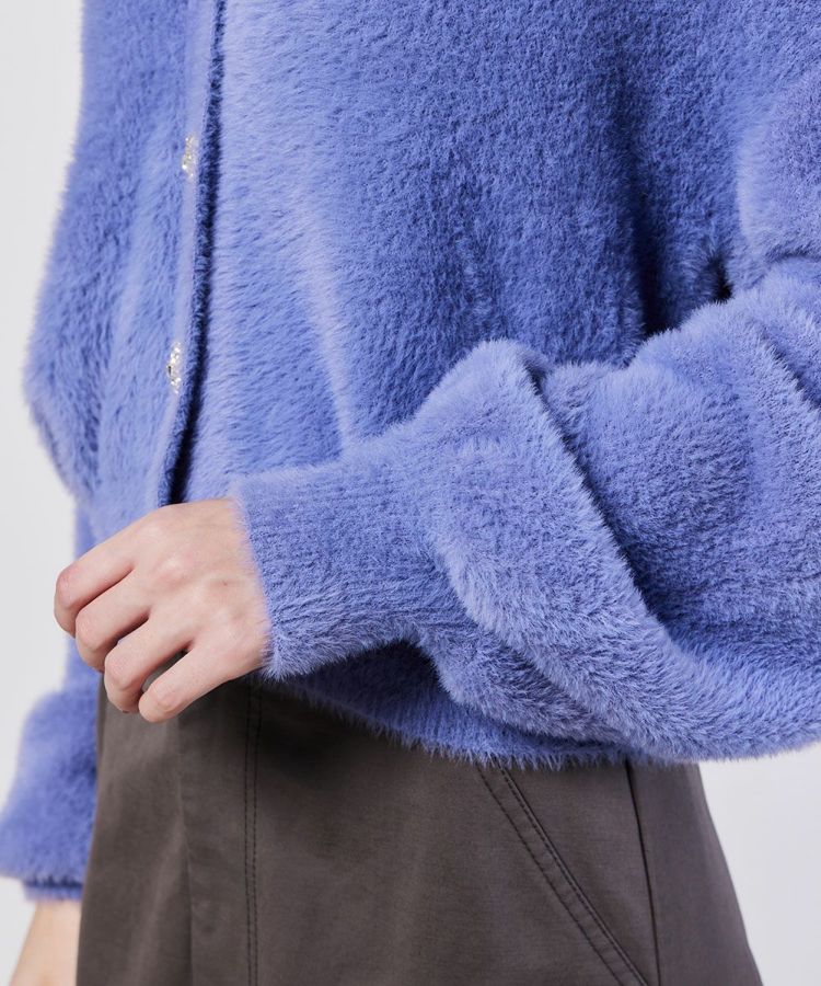 毛足の長いシャギーモールでつくったカーディガン。ふわふわのルックスが見た目にも暖かく、柔らかな表情を演出してくれます。ポイントはシルエットで、ショート丈に加え、スリーブはたっぷりボリュームを持たせることでコーディネートにメリハリを出し、スタイル良く見せてくれるのが魅力。程よいVネックの開き感が女性らしく、上半身の華奢見えを叶えます。ワンピースにも、タイトなパンツとも相性の良い一枚。