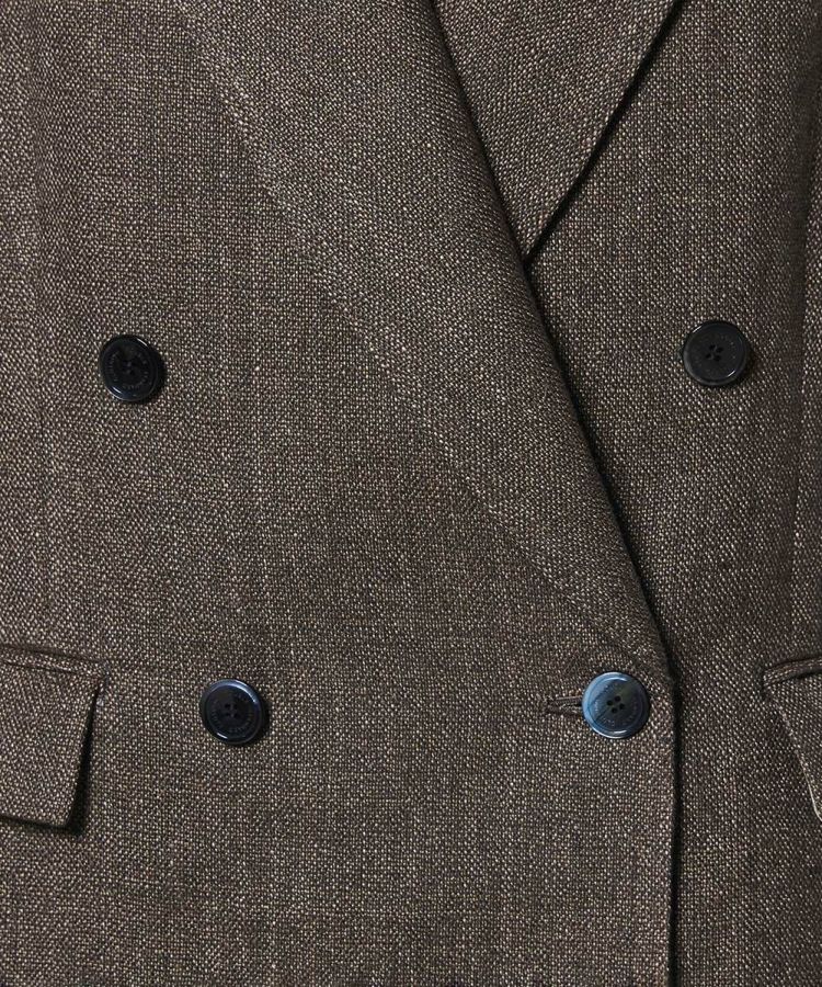 上品な雰囲気が漂うダブルジャケット。程よくゆとりをもたせたシルエットが、きちんと感の中にこなれた印象を演出します。カラーはモードなムードのオフホワイトと、着回し力の高いブラウンの2色展開。同素材のパンツ(型番:0306241261)やジレ(0304242261)と合わせれば、オケージョンシーンにも対応できる洗練されたセットアップスタイルが完成します。