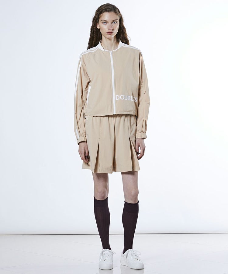 鈴木紗理奈とのコラボレーション第2弾として登場したナイロンブルゾン。軽やかで動きやすいストレッチタフタ素材を採用し、さらに柔らかな風合いになるよう丁寧な加工を施しました。また撥水、接触冷感、紫外線防止と夏に嬉しい機能を備えています。ロゴが全体に行き渡るように施されたサイドラインのデザインがこだわりのポイント。日常のカジュアルスタイルに差がつく一着に仕上がっています。