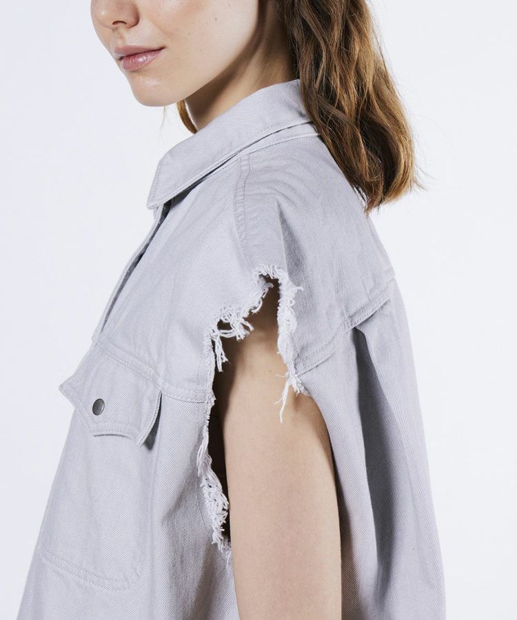 一枚着はもちろんレイヤードでも活躍する、ビッグシルエットのデニムベスト。ムラ染めの風合いが特徴的なデニム素材にバイオ加工を施し、ヴィンテージのような味わい深い表情に仕上げました。爽やかなライトグレーが涼しげな印象で軽やかに着こなせるのも魅力。羽織るだけでこなれ感が出る優秀アイテムです。