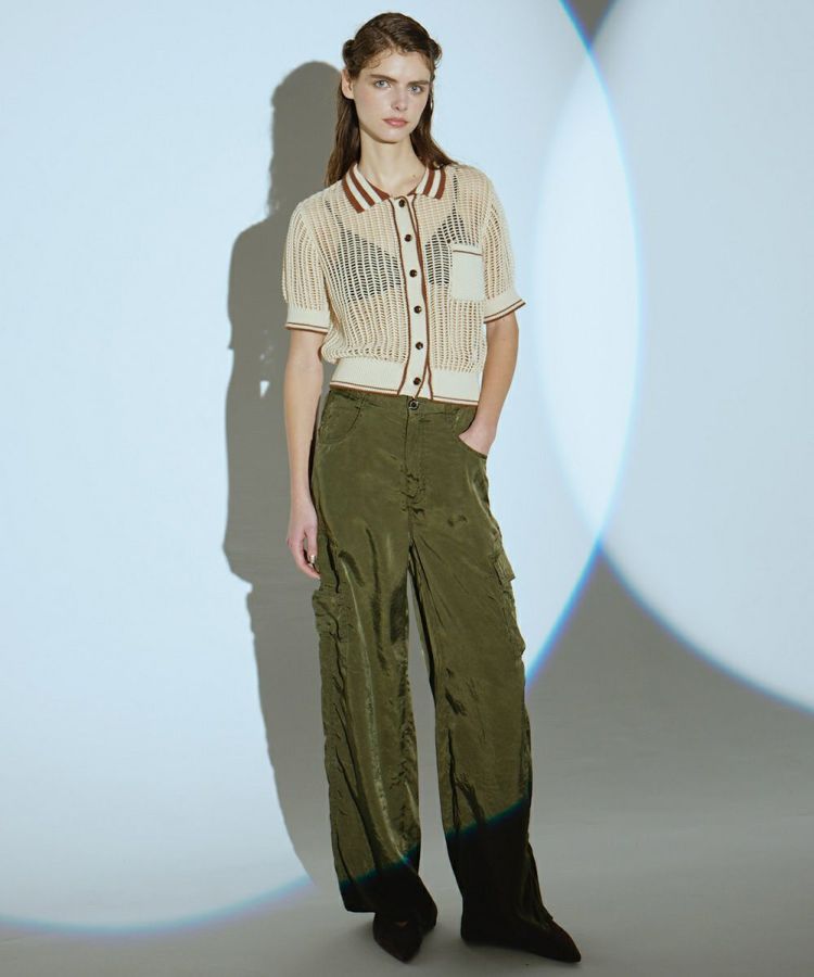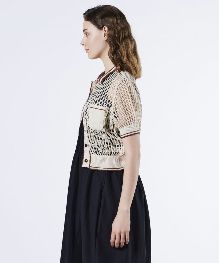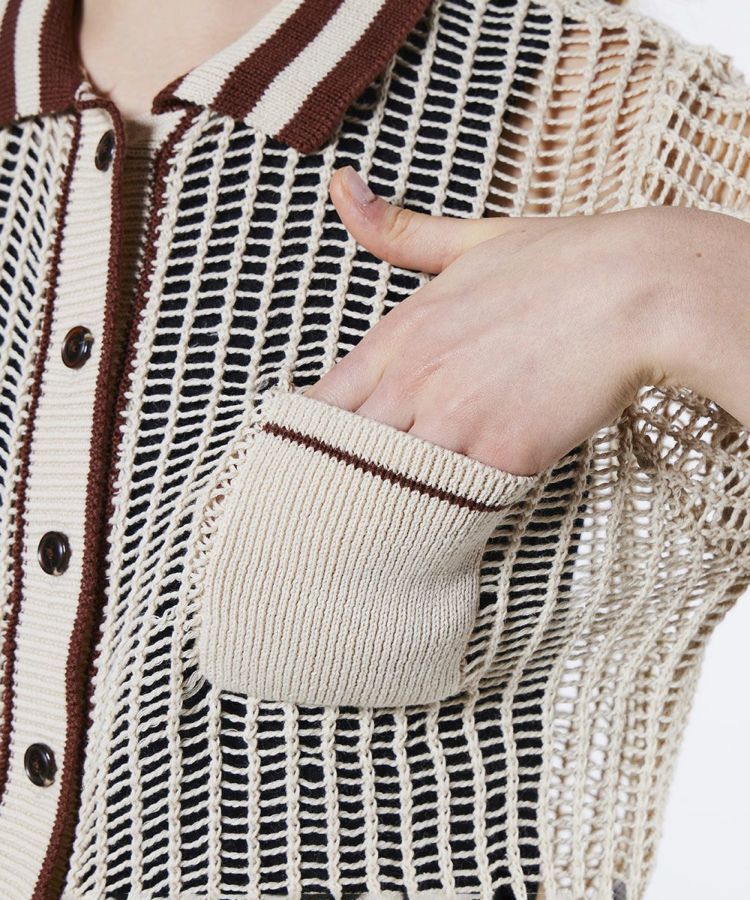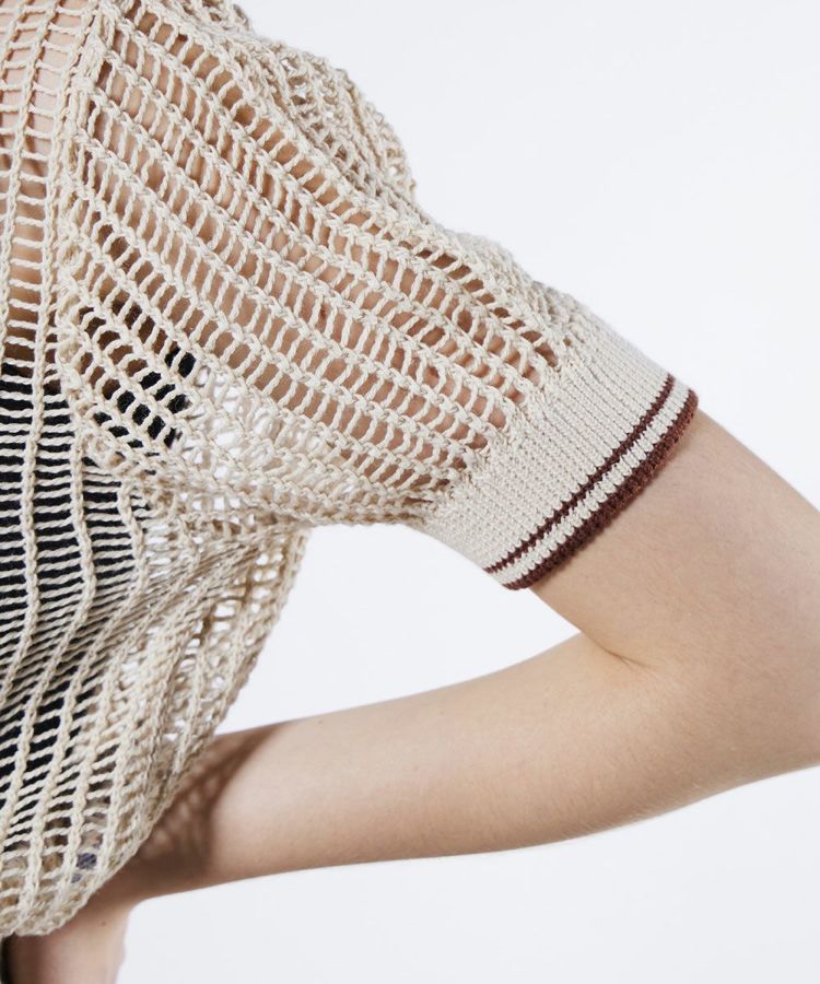 エキゾチックな雰囲気のシャツを軽やかなニット素材で表現した、トレンド感溢れるトップス。透け感のある爽やかなニット地でヘルシーな肌見せを叶えます。丈を少し短めにしたことで、カジュアルパンツやデニム、スカートなど、さまざまなボトムスと合わせてもバランスよく決まるのもポイント。着こなしの幅が広がる万能アイテムです。