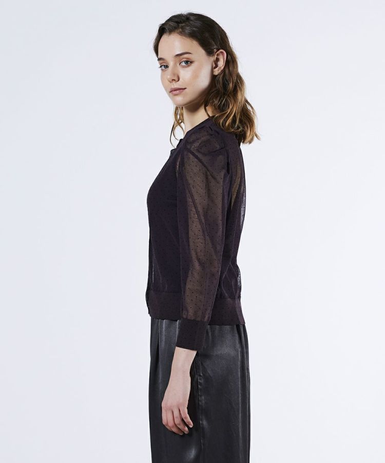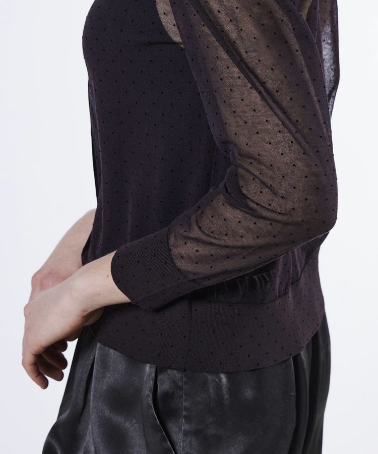 程よく透けるシアーな質感がセンシュアルなムードのカーディガン。シャリっとした清涼感のある風合いで、暑い季節でも快適な着心地を叶えます。さりげなく散りばめたドット柄と、ふんわりとしたパフスリーブが、女性らしさを引き立てるフェミニンなアクセントに。日焼け防止や冷房対策にも活躍する一枚です。