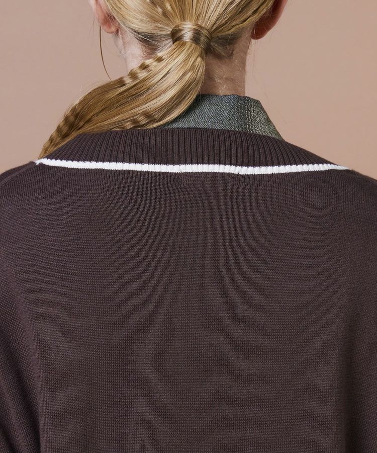 スクールテイストを取り入れたデザインが印象的なカーディガン。コンパクトなショート丈シルエットで、どんなボトムスともバランス良く決まります。フロント部分に施したオリジナルのワッペンが遊び心のあるアクセントに。秋口から春先まで使いやすく、ロングシーズンにわたって大活躍するアイテムです。