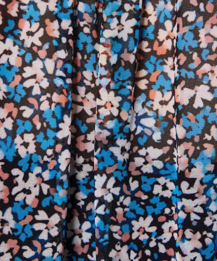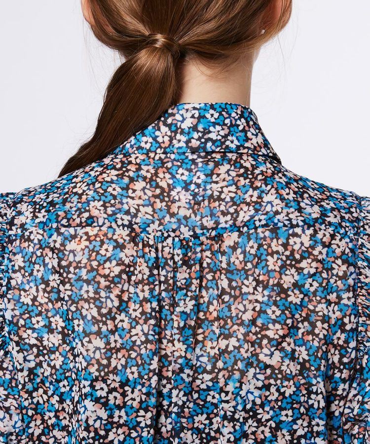 全面にあしらった小花柄と黒のリボンが、クラシカルなムードを演出するシフォンブラウス。軽やかな素材感が、女性らしいやわらかさを引き立てます。胸元と袖口にはたっぷりとギャザーを施し、華やかな表情に。ロングスカートでフェミニンに、シンプルなパンツと合わせて品よく着こなすのもおすすめです。