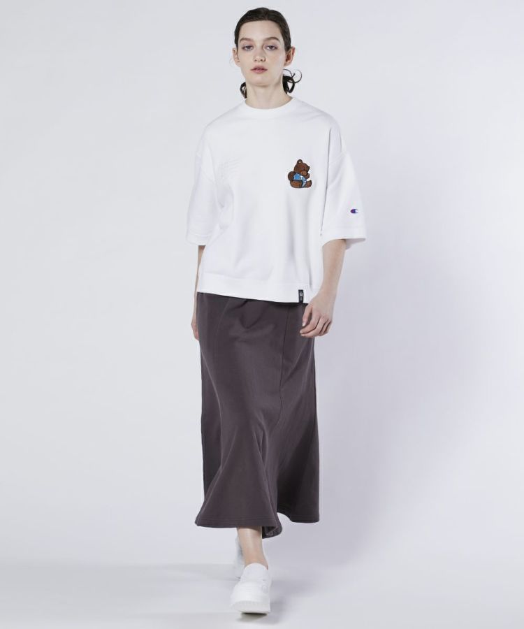 アメリカ発の人気ブランド「Champion」に別注をかけた、オリジナルデザインの半袖スウェット。フロントには「Champion」のロゴと、ダブスタで人気のキャラクター「ニジタロウ」を配し、遊び心のあるデザインに仕上げました。カラーは3種類で自分好みに選べるのが嬉しいポイント。デイリーに取り入れやすく、着回し力の高さも魅力の一着です。