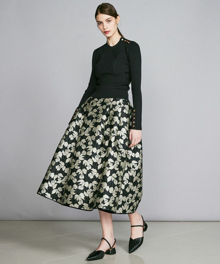 着回し力が高い万能なプルオーバーニット。定番のダル糸を使用して編み立て、程よくフィットするシルエットが女性らしいラインを引き立てます。ショルダーや袖には、艶を抑えたシャンパンゴールドのドットボタンをあしらい、クラシカルで上品なアクセントをプラス。ボリュームのあるスカートと合わせることで、メリハリのあるバランスが生まれ、全体をすっきりとスタイル良く見せてくれる一着です。