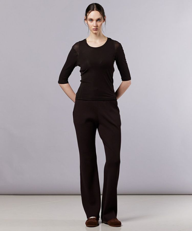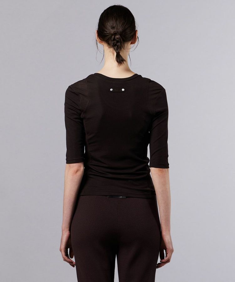 肌ざわりが心地よく、手に取るだけで上質な風合いを感じられるベアフライス素材のトップス。ストレッチ性にも優れており、長時間の着用でも快適さをキープしてくれます。身体に程よくフィットするタイトなシルエットは、ボリュームのあるボトムスとのバランスも取りやすく、スタイリングの幅を広げてくれる優秀な一枚。シンプルながらも美しいラインを引き立て、デイリーに活躍してくれます。