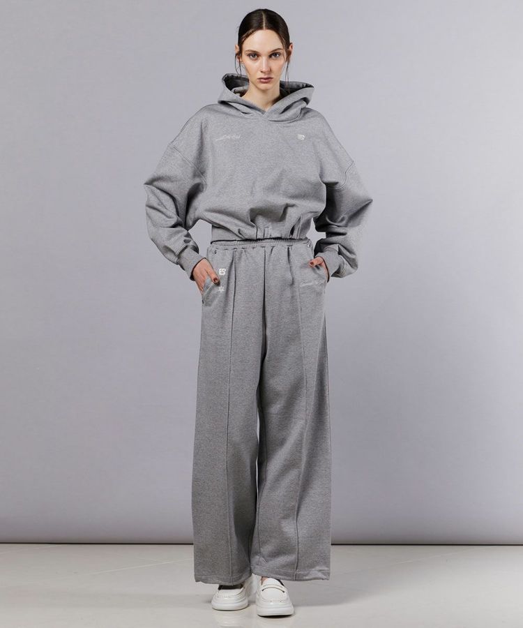 上品な光沢感が魅力的なショート丈のパーカー。裏毛素材にシルケット加工を施すことで、カジュアルな中にも程よいハリ感と高級感をプラスしました。バックには切り替えデザインをあしらい、立体感のある美しいシルエットを演出。ウエスト位置が高く見えるショート丈は、ボリュームのあるボトムスともバランスよく決まり、スタイルアップ効果も抜群です。
