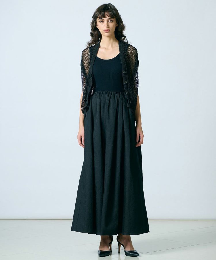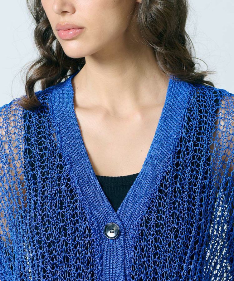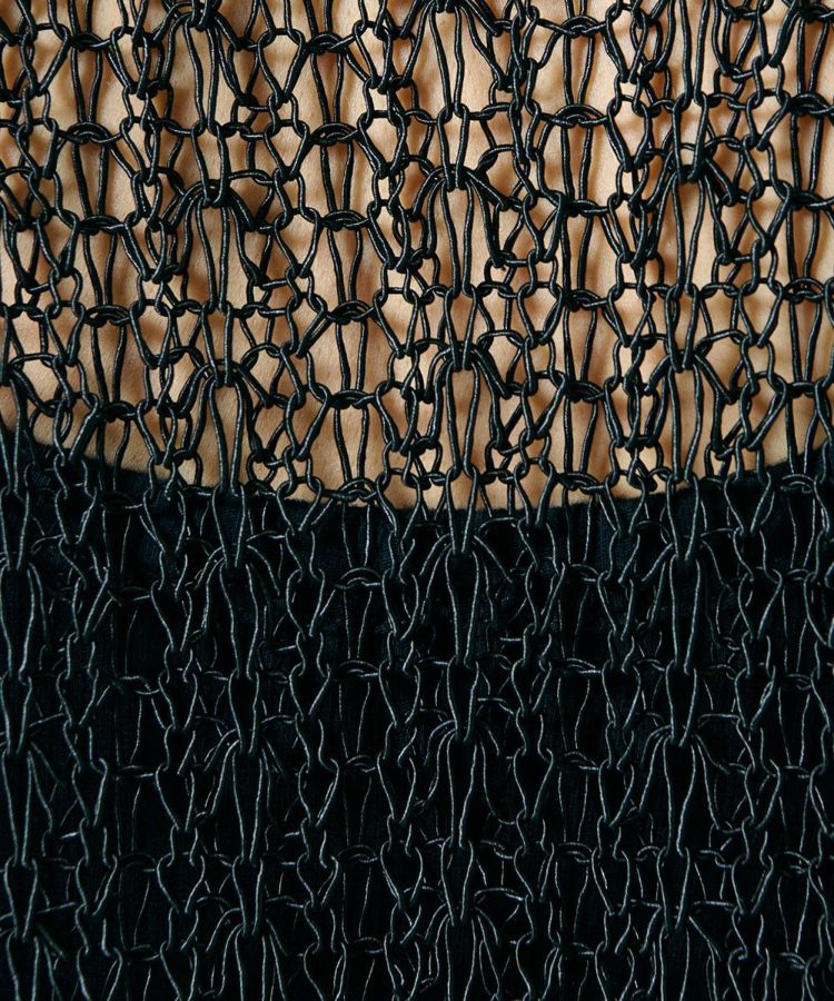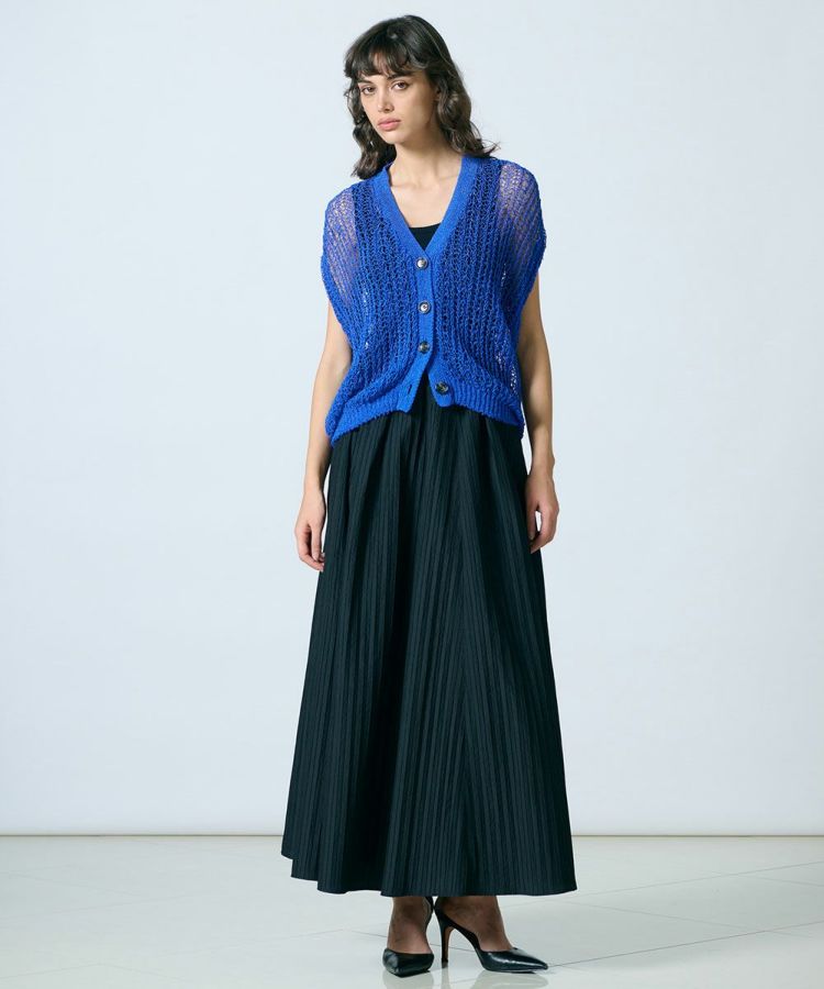 レース素材が涼しげなニットベスト。ブライトポリエステルと再生コットンをコイル状に仕上げた、贅沢な素材を使用しています。ゆったりとリラクシンなサイズ感もポイント。タンクトップなどとレイヤードするだけでサマになり、単調になりがちな夏のコーデに変化を与えてくれます。