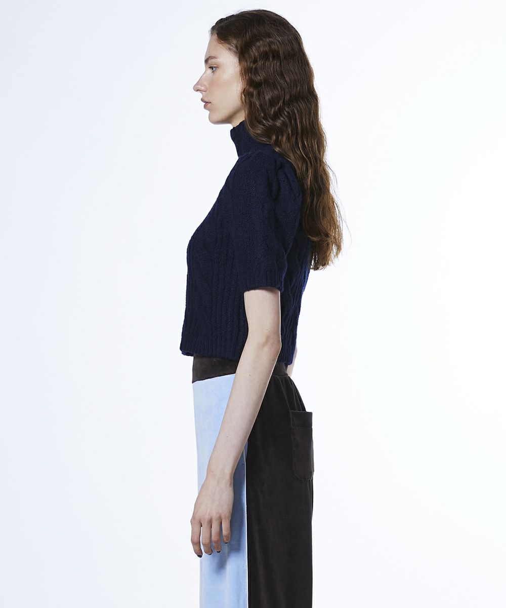 ESSENTIAL / 片畦ケーブルショートニット