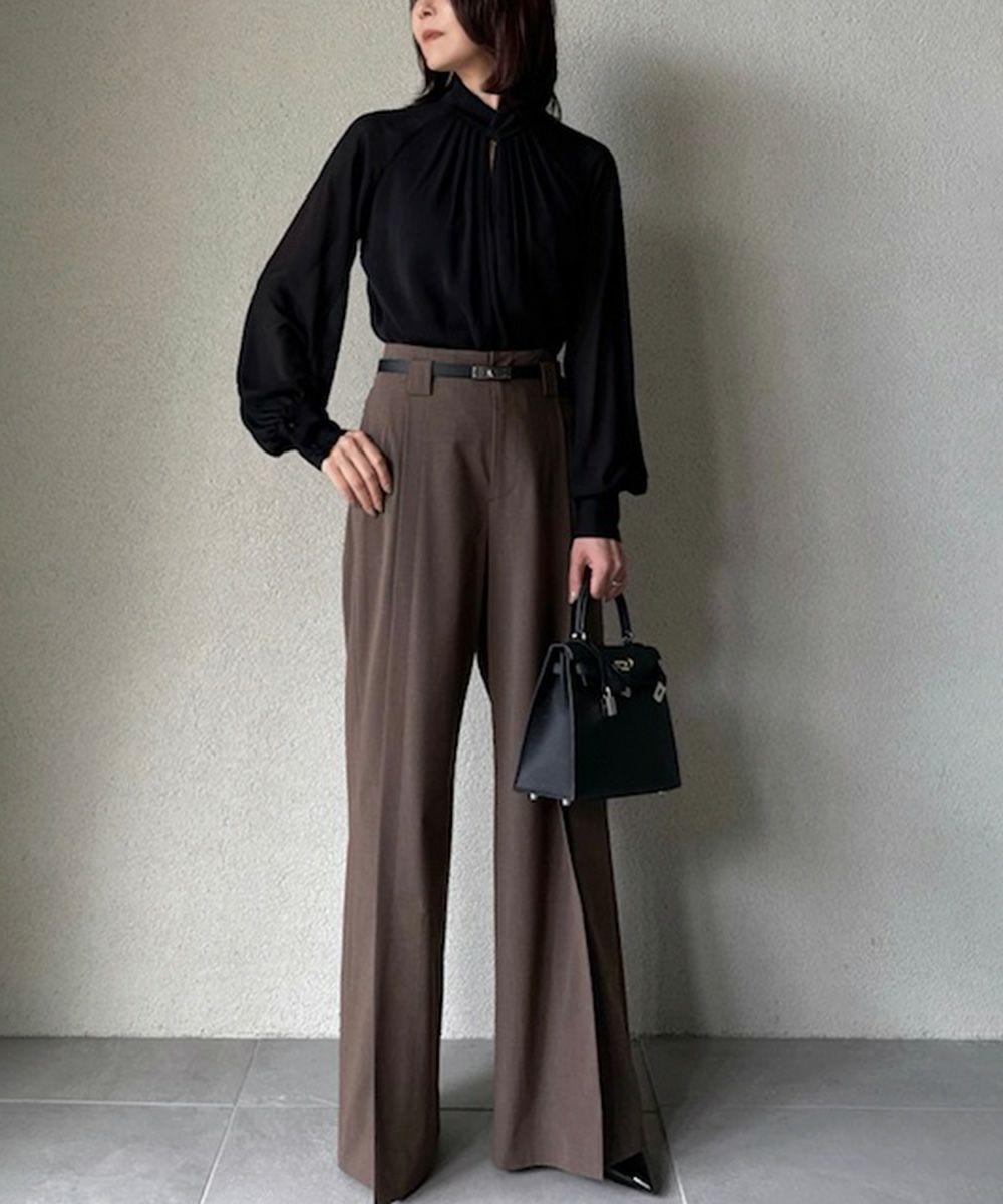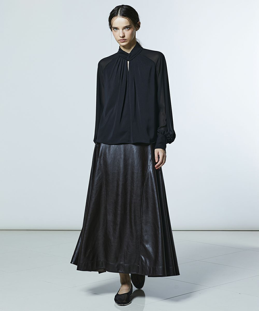 AKKO×Sov./ クロスネックマットサテン シフォンブラウス(WEB限定)