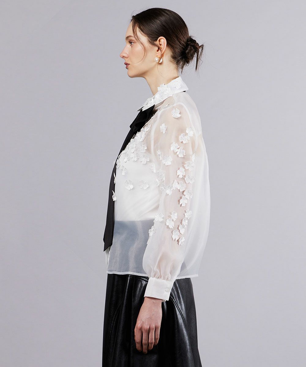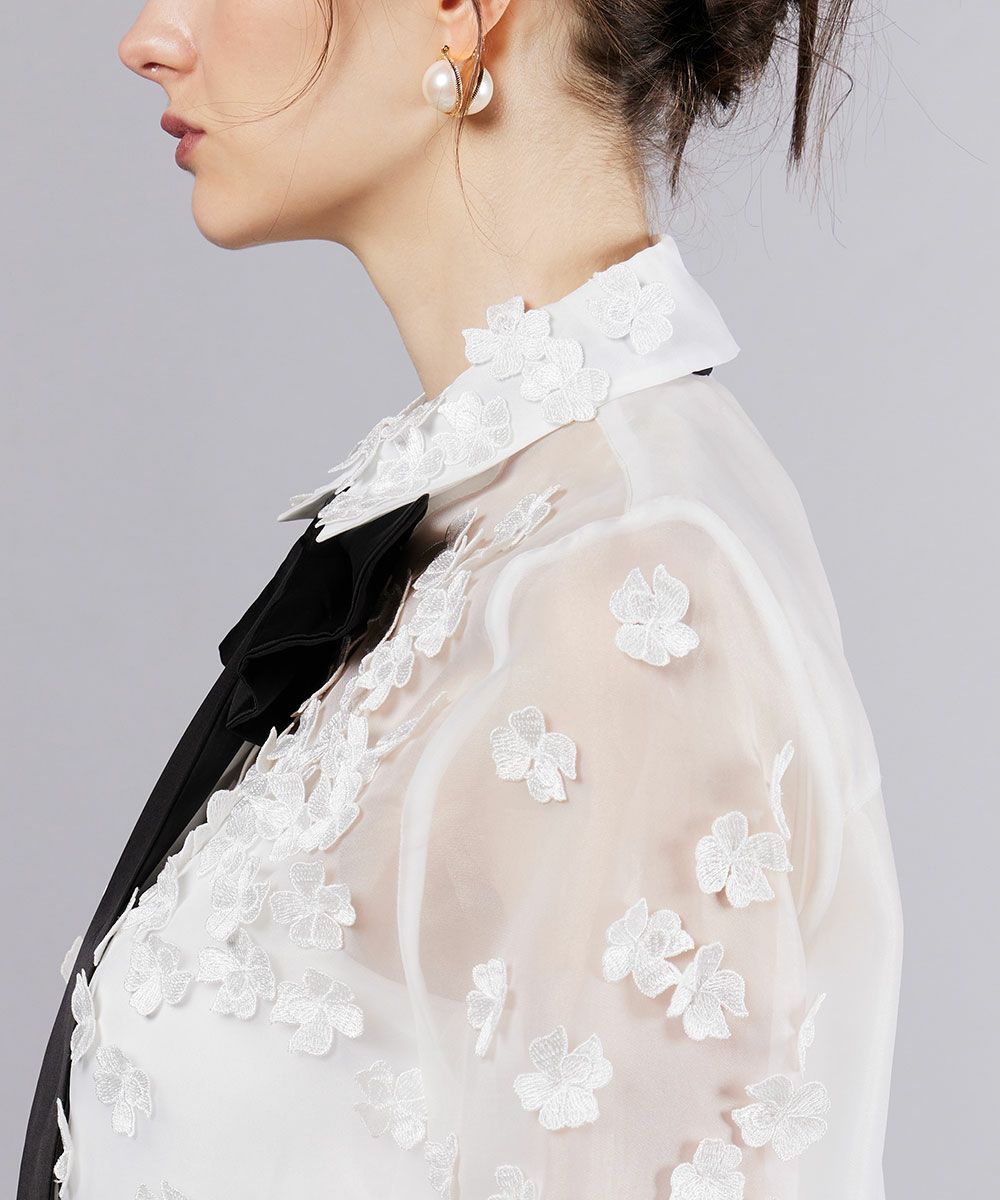 Sov. / オーガンジーフラワーボウタイシャツ