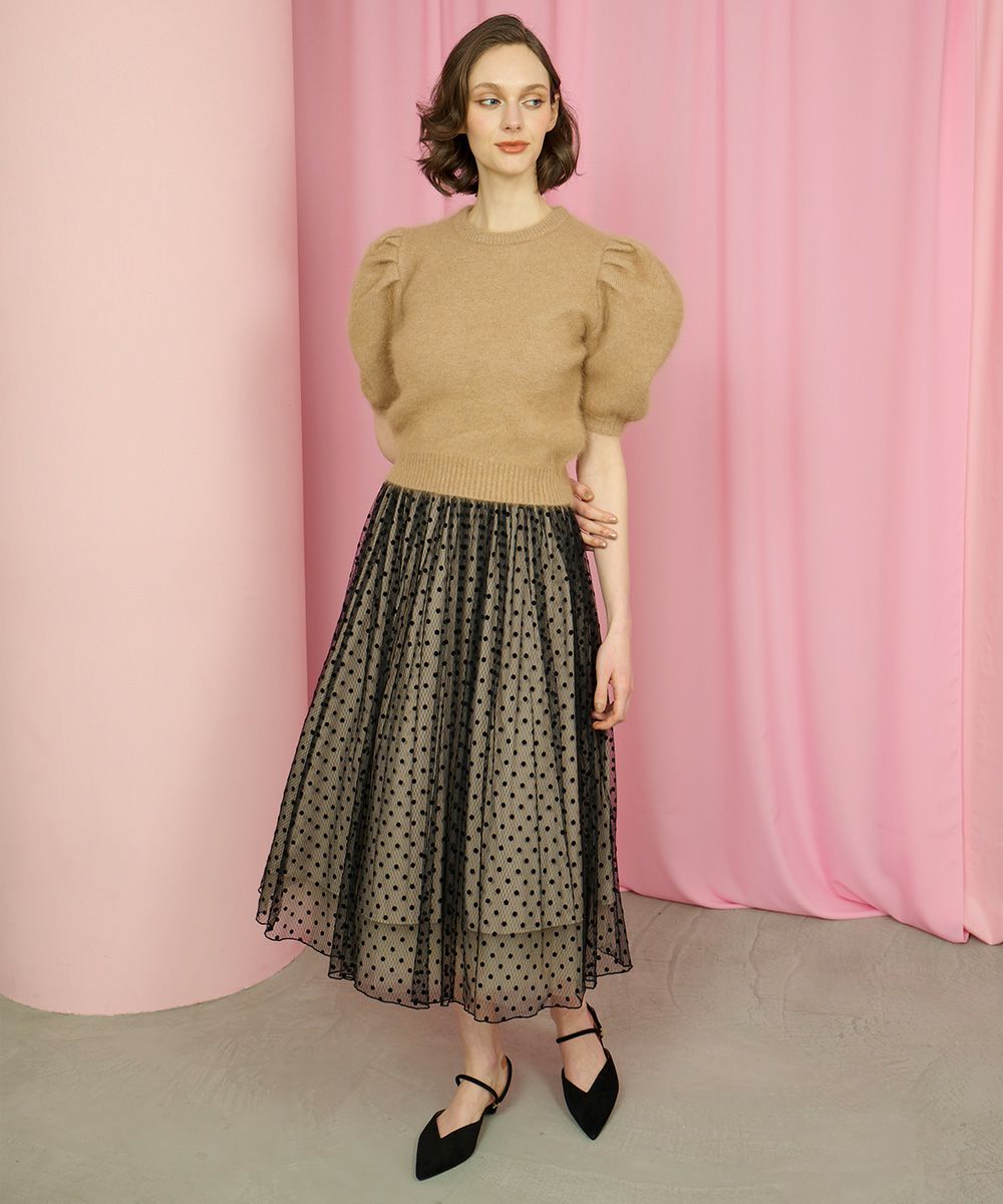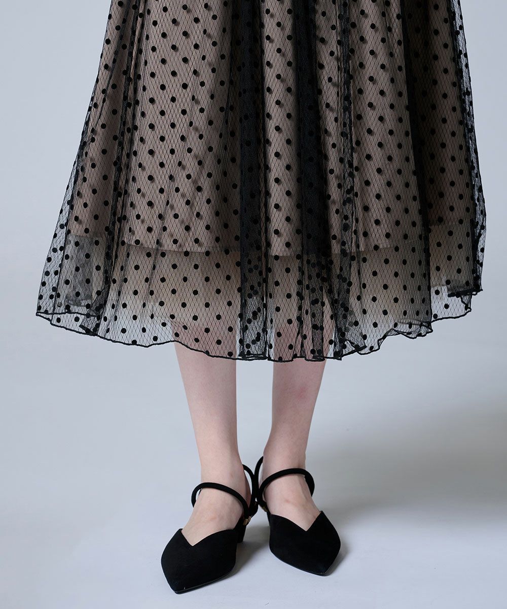 CORCOVADO / チュールドットフロッキー フレアスカート