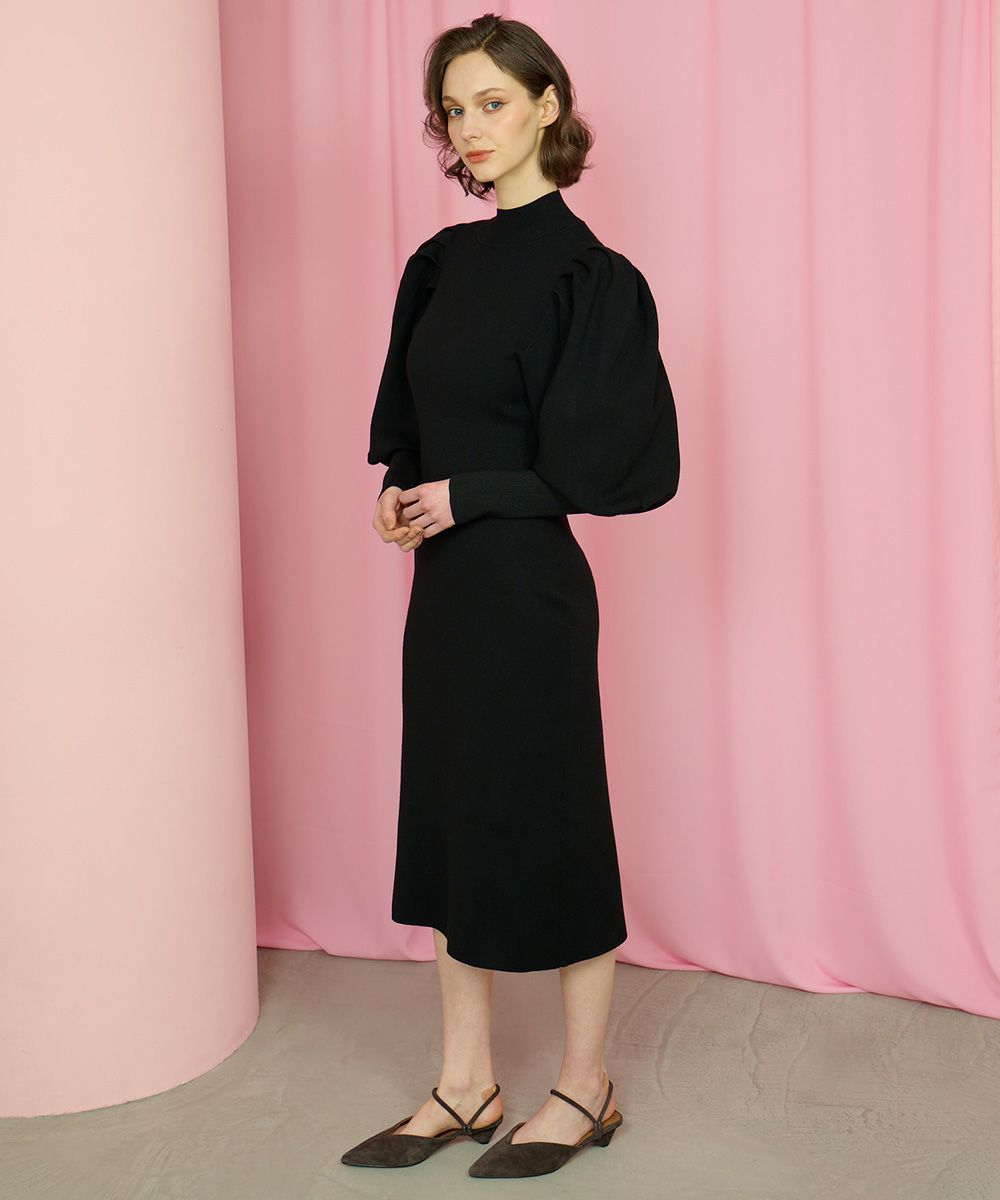 CORCOVADO / SNOWY パフスリーブリブニットドレス